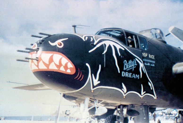 Left - NA-B-25 Mitchell. Colorized photo of the REAL 'Betty's Dream', 345 BG (Jeff Ethell collection)